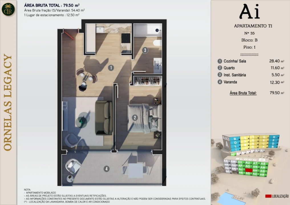 Condomínio fechado composto por 50 apartamentos (T0, T1, T2, T2+1 e T3), com arquitetura contemporânea, excelentes acabamentos, ótima exposição solar e áreas bem distribuídas.