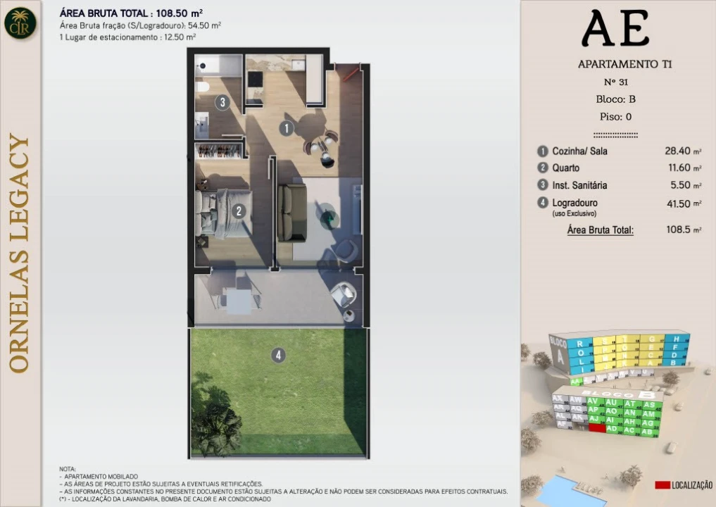 Condomínio fechado composto por 50 apartamentos (T0, T1, T2, T2+1 e T3), com arquitetura contemporânea, excelentes acabamentos, ótima exposição solar e áreas bem distribuídas.