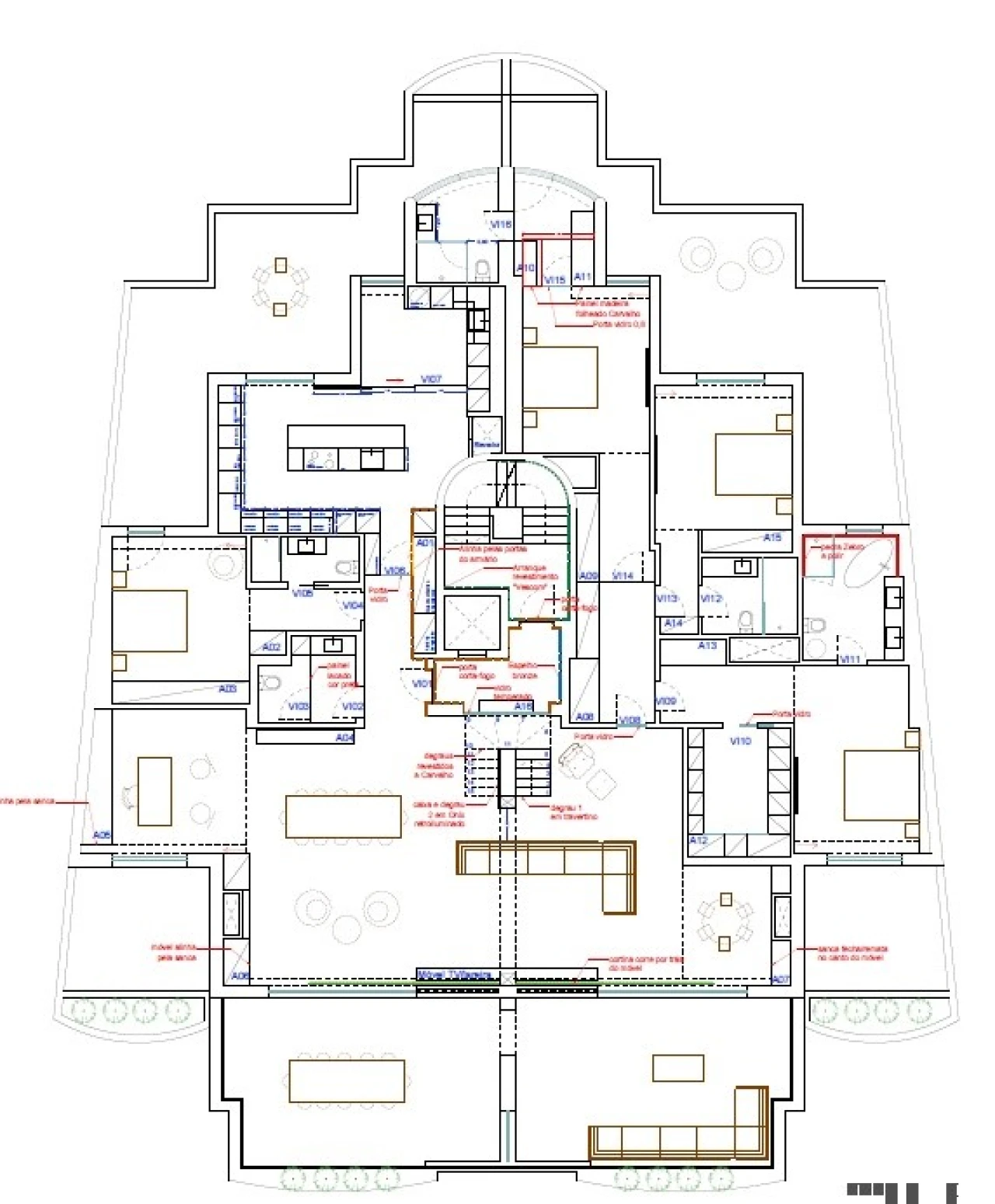 Com amplas áreas, 330 m2 de área Bruta Privativa e 200 m2 de varandas.