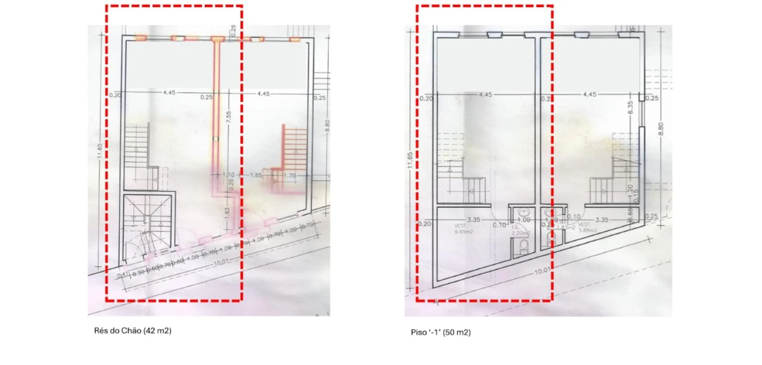 Constituída por 2 pisos, com 42m2 no piso 0 e 50m2 no piso -1