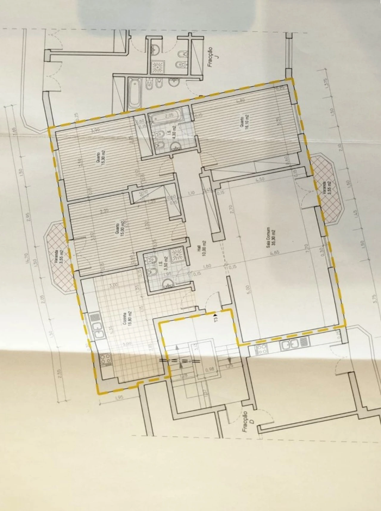 O imóvel é composto por sala de 35m2 com lareira e acesso a varanda de 4m2, cozinha de 16m2 (equipada com microondas, forno, placa a gás, exaustor, esquentador, combinado, máquina de lavar loiça e máquina de lavar roupa), hall de entrada de 10m2, agradável suíte de 16m2 com casa de banho privativa de 4m2, dois quartos, ambos de 15m2, um deles com acesso a varanda de 4m2 e uma casa de banho comum de 4m2. É importante referir que a casa conta com vários espaços de arrumação, roupeiros embutidos nos quartos e no hall.