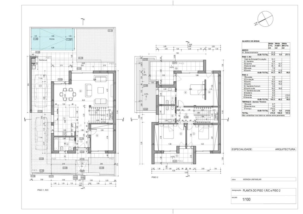 Esta moradia contempla uma arquitetura contemporânea, onde se privilegia a utilização de técnicas e materiais que se refletem numa obra com acabamentos de excelentes atributos, que lhe conferem uma qualidade superior, sendo composta por 3 pisos, distribuídos da seguinte forma: