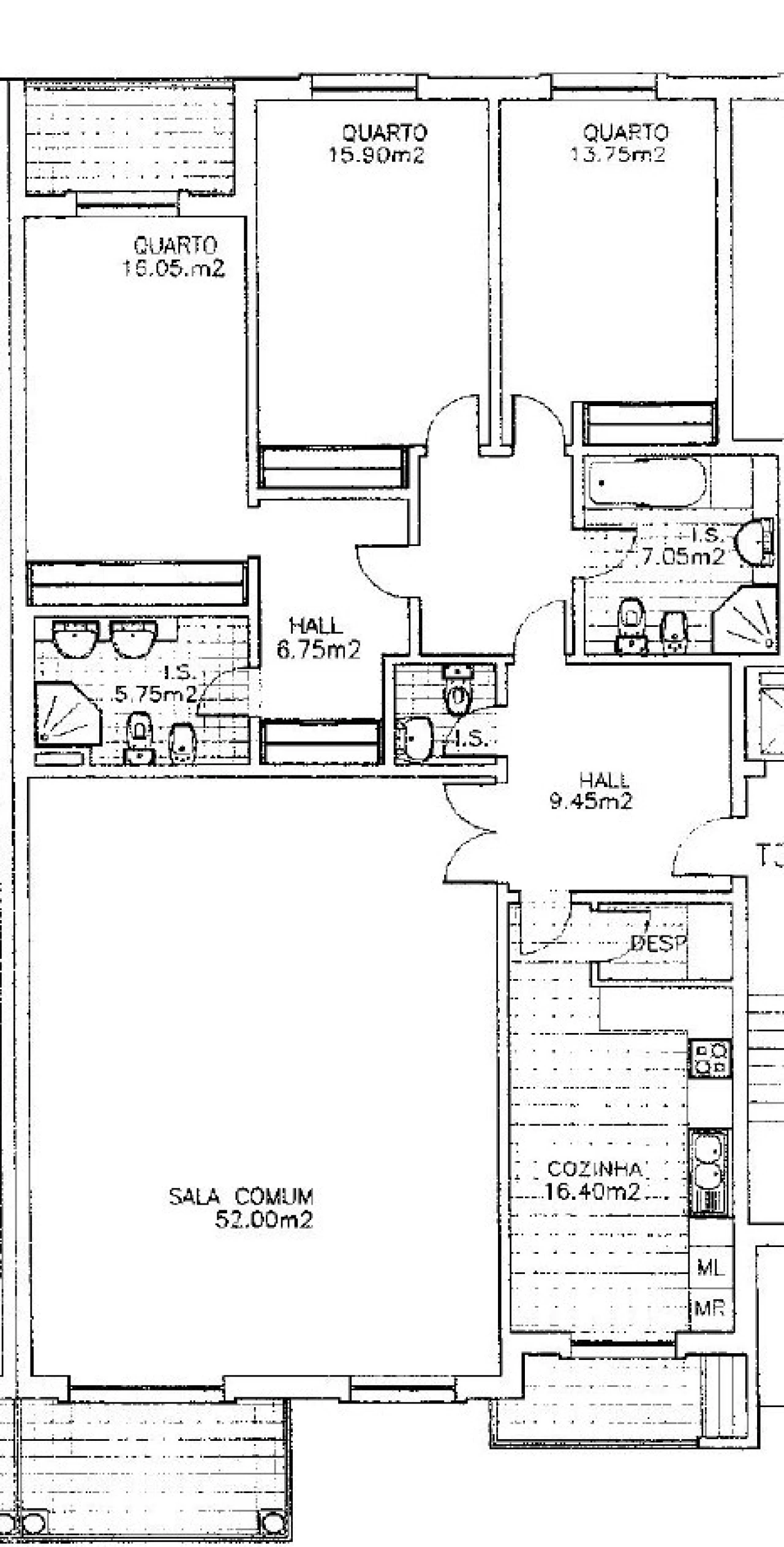 3 quartos com excelentes áreas (13,75 m², 15,90 m² e 16,05 m²), sendo um deles suíte