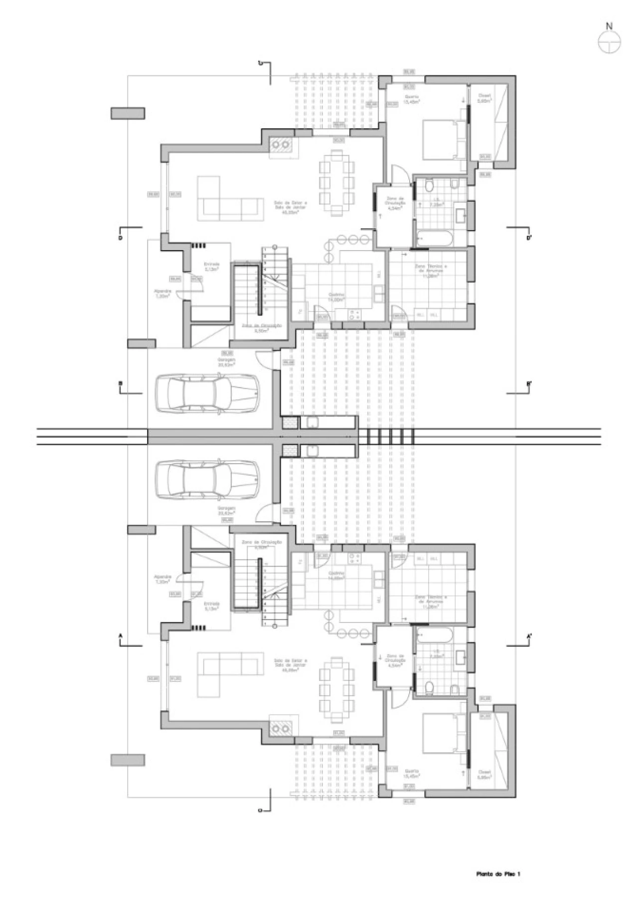 Terreno com 1.196 m2, para construção de moradia de linhas modernas, composta por: rés do chão, 1º piso e logradouro. com uma área bruta de construção de 308.15, área de implantação de 193.35m2.