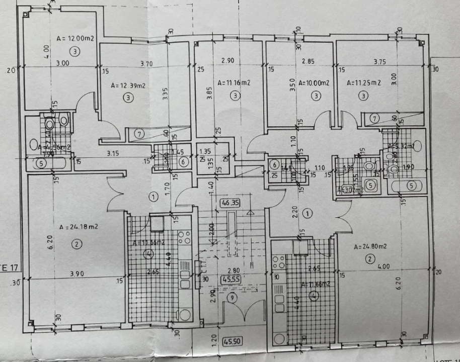 Prédio composto por 4 apartamentos T2 e 4 apartamentos T3, distribuidos por 4 pisos.