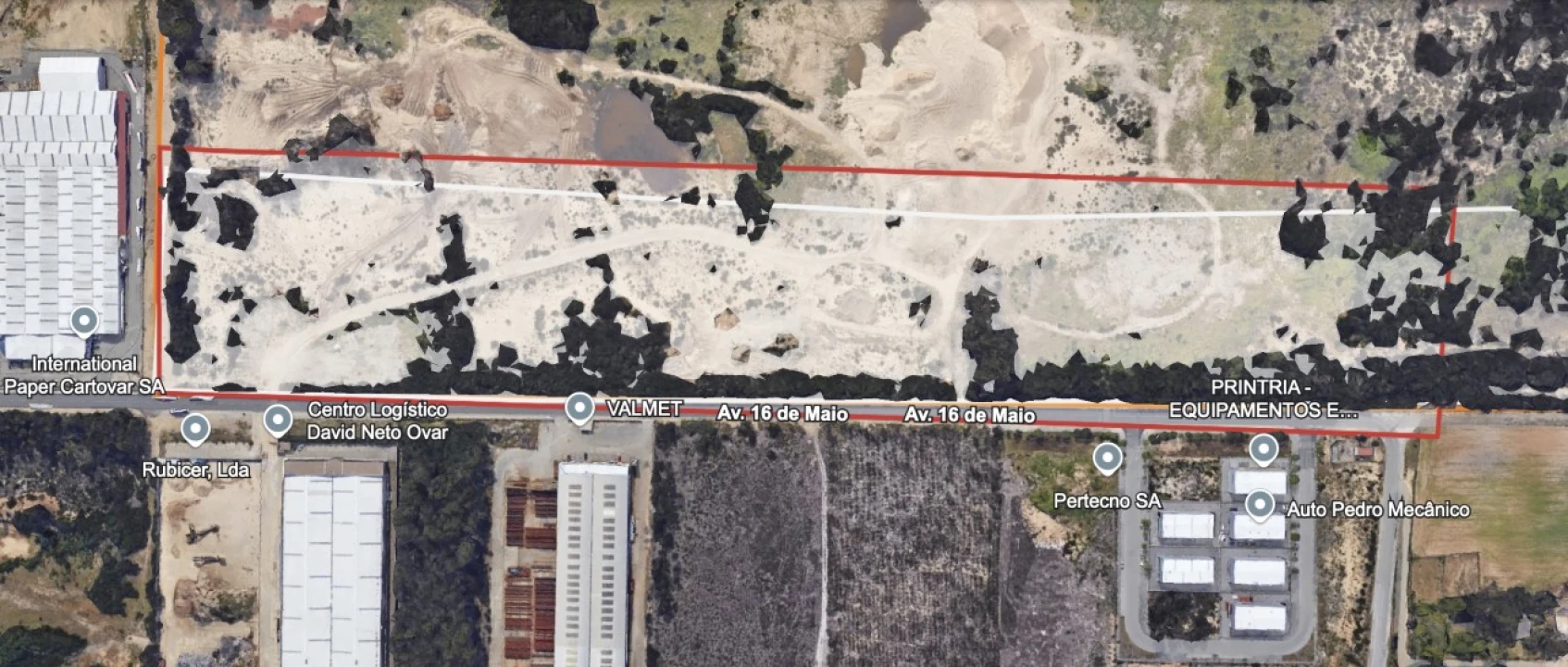 Situado numa das principais vias da Zona Industrial de Ovar, beneficiando de uma frente impressionante de 770 meros e profundidade de 150 metros.