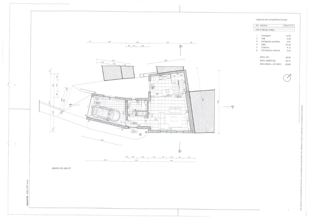 - PISO TÉRREO composto por hall de entrada, sala de estar e cozinha em Open Space, casa de banho e escada de acesso ao piso superior;