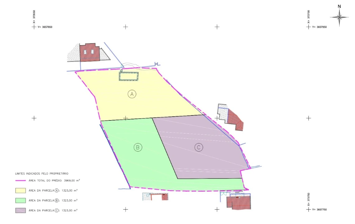 Parcela de terreno destacada de lote de terreno com 4.140 m2 de área total.