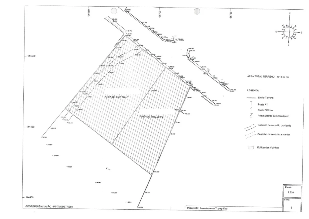 Conjunto de 2 terrenos em Rio Meão, com capacidade de edificação e uma área total de 4.513 m2 (1.920 m2 + 2.593 m2).