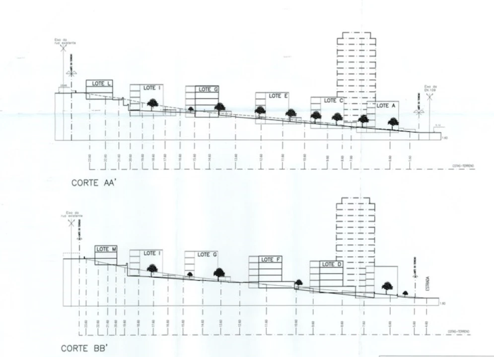 O terreno está previsto para a criação de 12 lotes, permitindo o desenvolvimento de um novo núcleo residencial moderno: