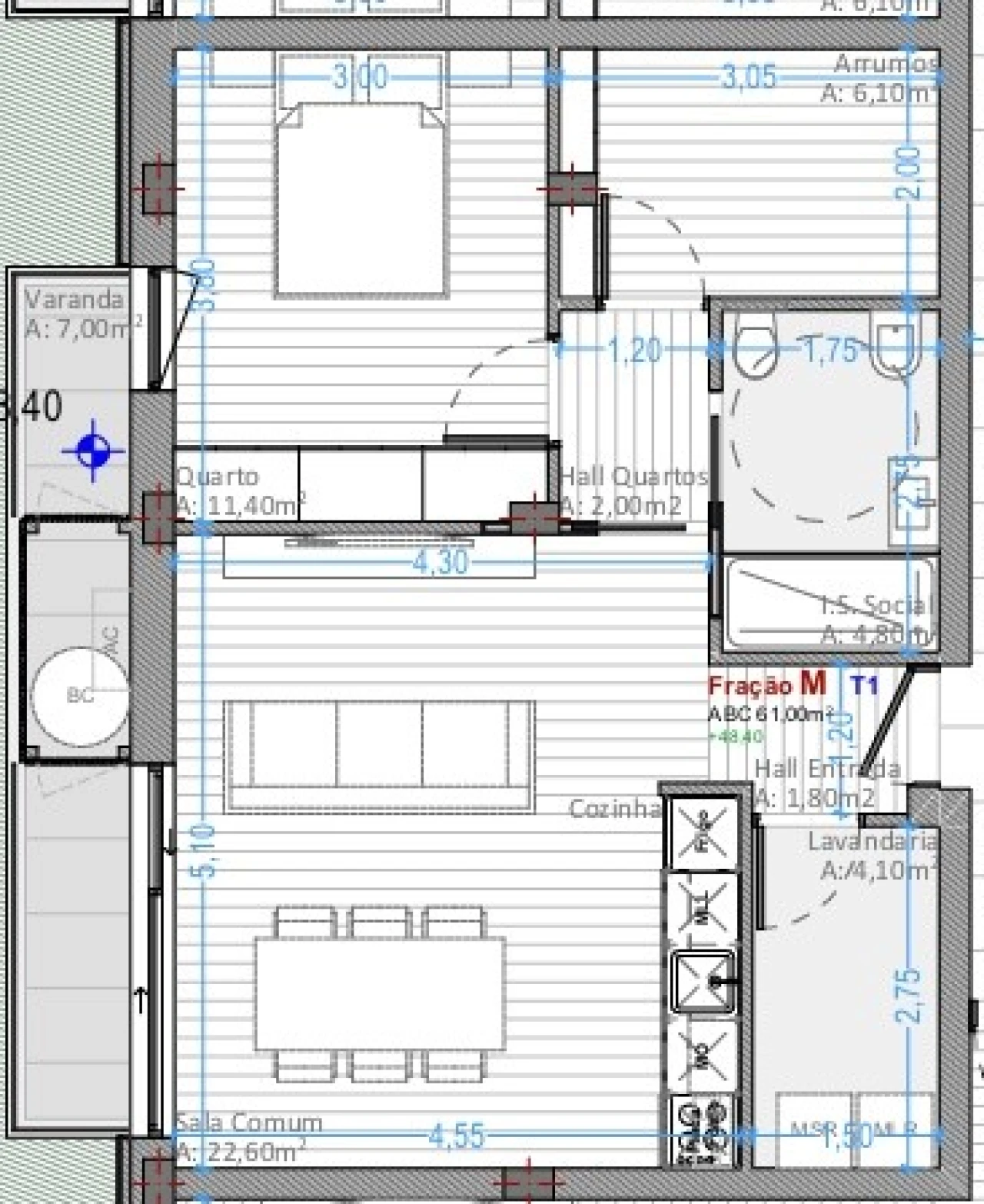 Área Bruta: 75.10m2 de espaço bem distribuído.