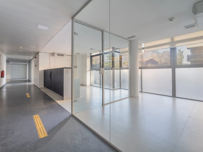 O escritório encontra-se com fit out e divisórias amovíveis, equipado com calhas técnicas de pavimento, teto falso com iluminação embutida e sistema de ar condicionado. Conta com instalações sanitárias privativas, boa luminosidade natural e é servido por elevador. Inserido no 1º piso do edifício, beneficia de serviço de segurança e tem a possibilidade de estacionamento no interior (valor não incluído na renda). Ao valor da renda acrescem ainda custos de condomínio.