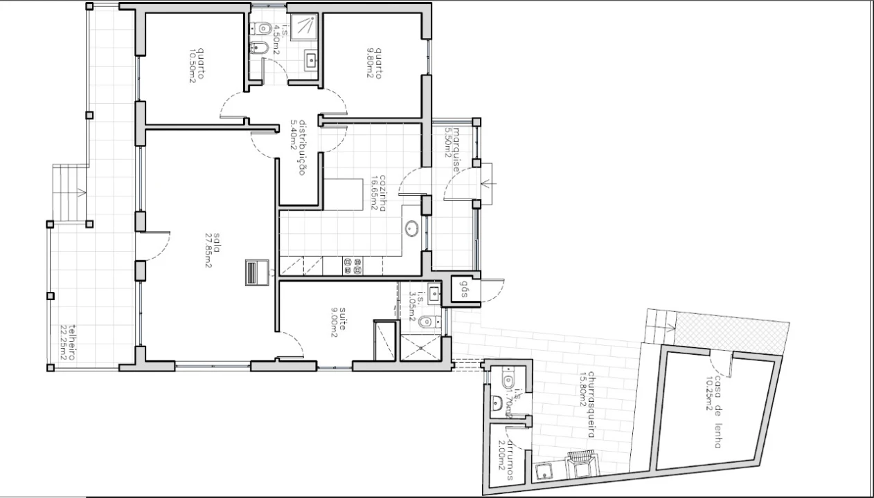 No exterior, o destaque vai para o jardim e o amplo terraço, ideal para momentos de lazer e convívio. Inclui zona de churrasqueira coberta e área lounge.