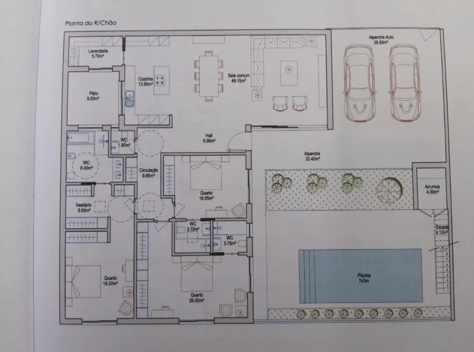 O imóvel dispõe de PIP aprovado para a construção de até 29 moradias em banda T3 e T4, todas com piscina privativa, totalizando uma área de construção de 5.494 m² um projeto altamente atrativo tanto para mercado residencial como para investimento turístico.