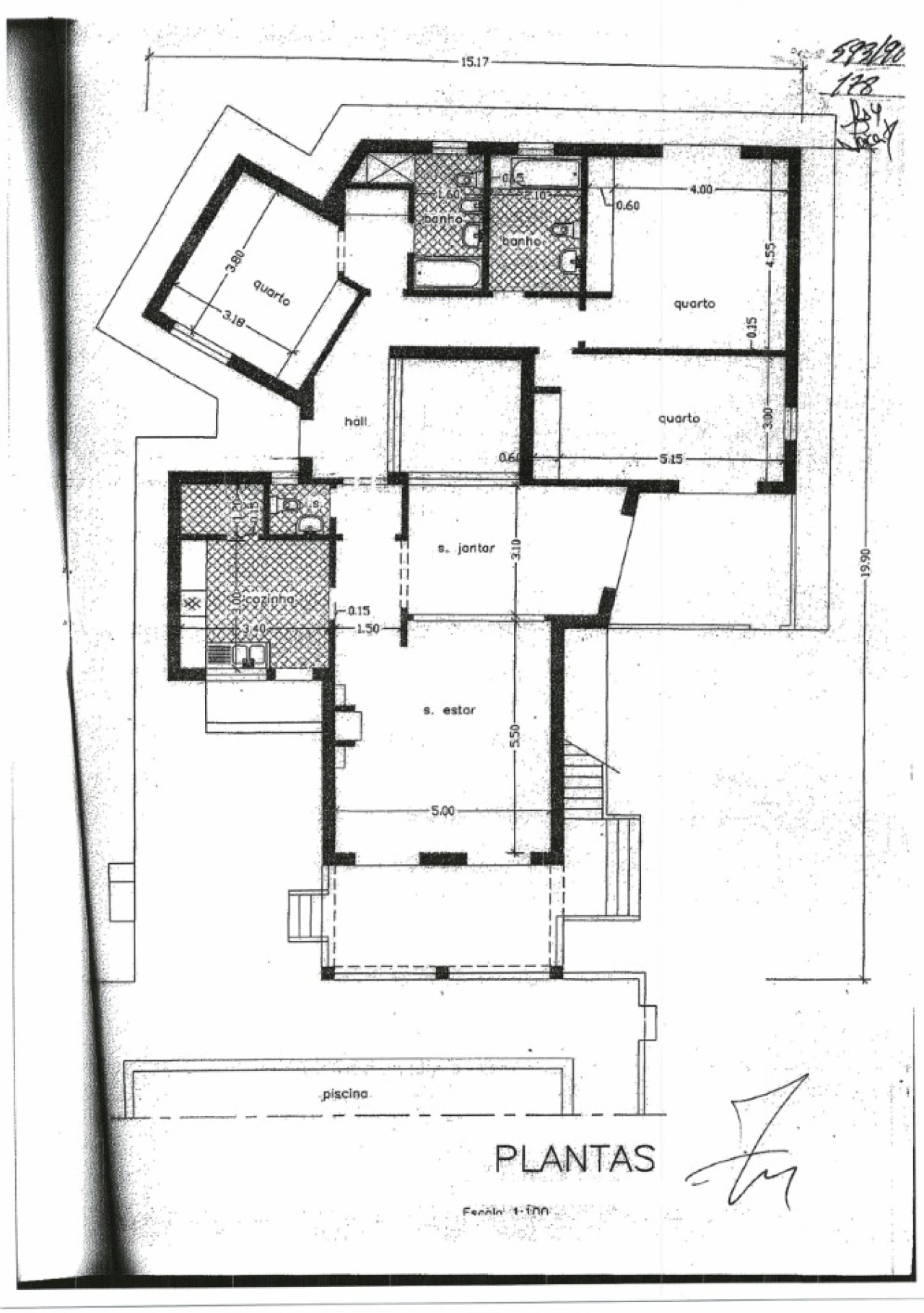 No piso térreo, dispõe de três quartos, sendo um deles em suíte, duas casas de banho e um WC. Tem uma acolhedora sala de estar com lareira, sala de jantar e cozinha, com acesso direto a um terraço fechado que proporciona um espaço adicional de lazer durante todo o ano.