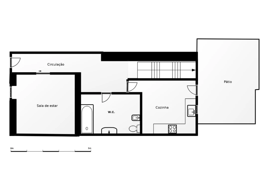 Moradia Unifamiliar de Rés-do-chão e 1º andar, T2 + 2 (5 assoalhadas), com duas casas de banho (banheira e poliban), uma por cada piso, corredor, hall de distribuição, 1 quarto no r/chão, cozinha ampla com acesso direto ao quintal, localizada em rua muito calma, com facilidade de estacionamento automóvel na zona.