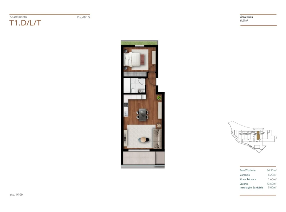 Os apartamentos T0 e T1 distinguem-se pela luminosidade, pelos acabamentos de qualidade e por uma construção pensada para durar.