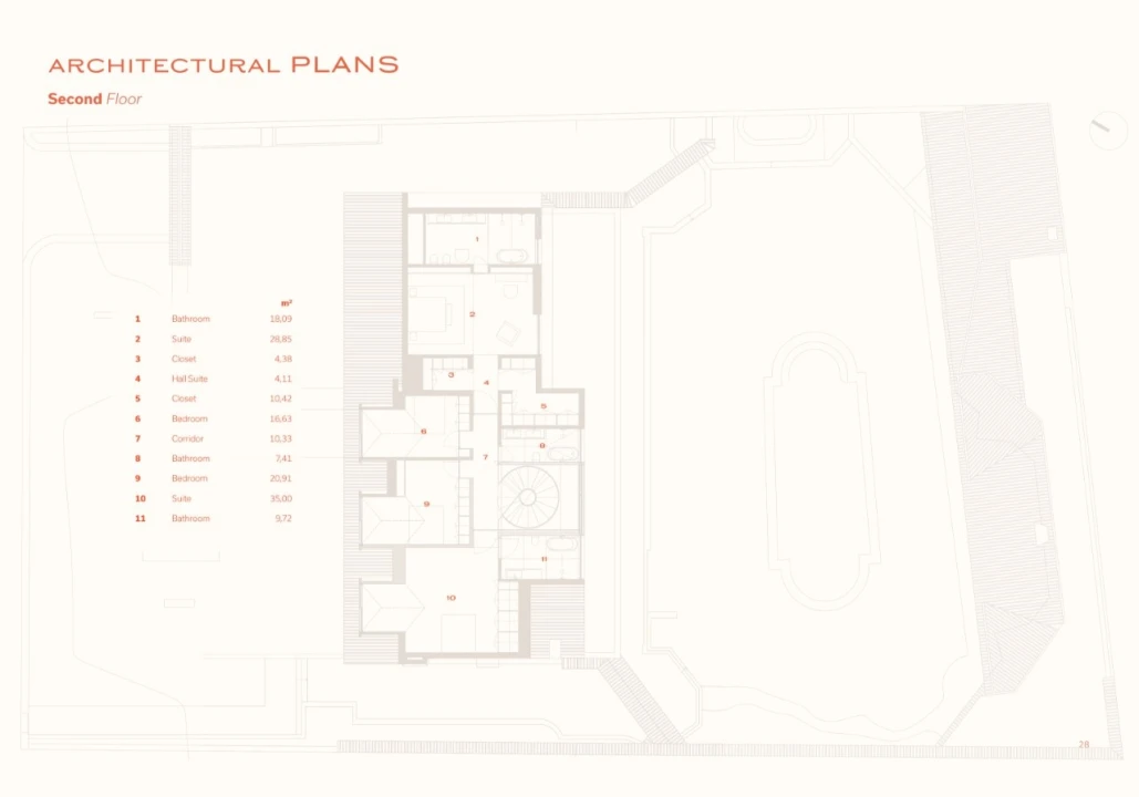 No centro da propriedade encontra-se uma fabulosa piscina em estilo mediterrâneo.