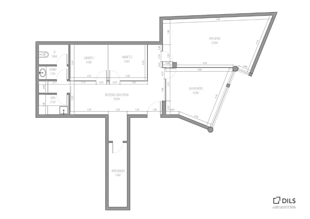 Amplo escritório com 87 m2, localizado na prestigiada Avenida de Cascais, no Bairro do Rosário.