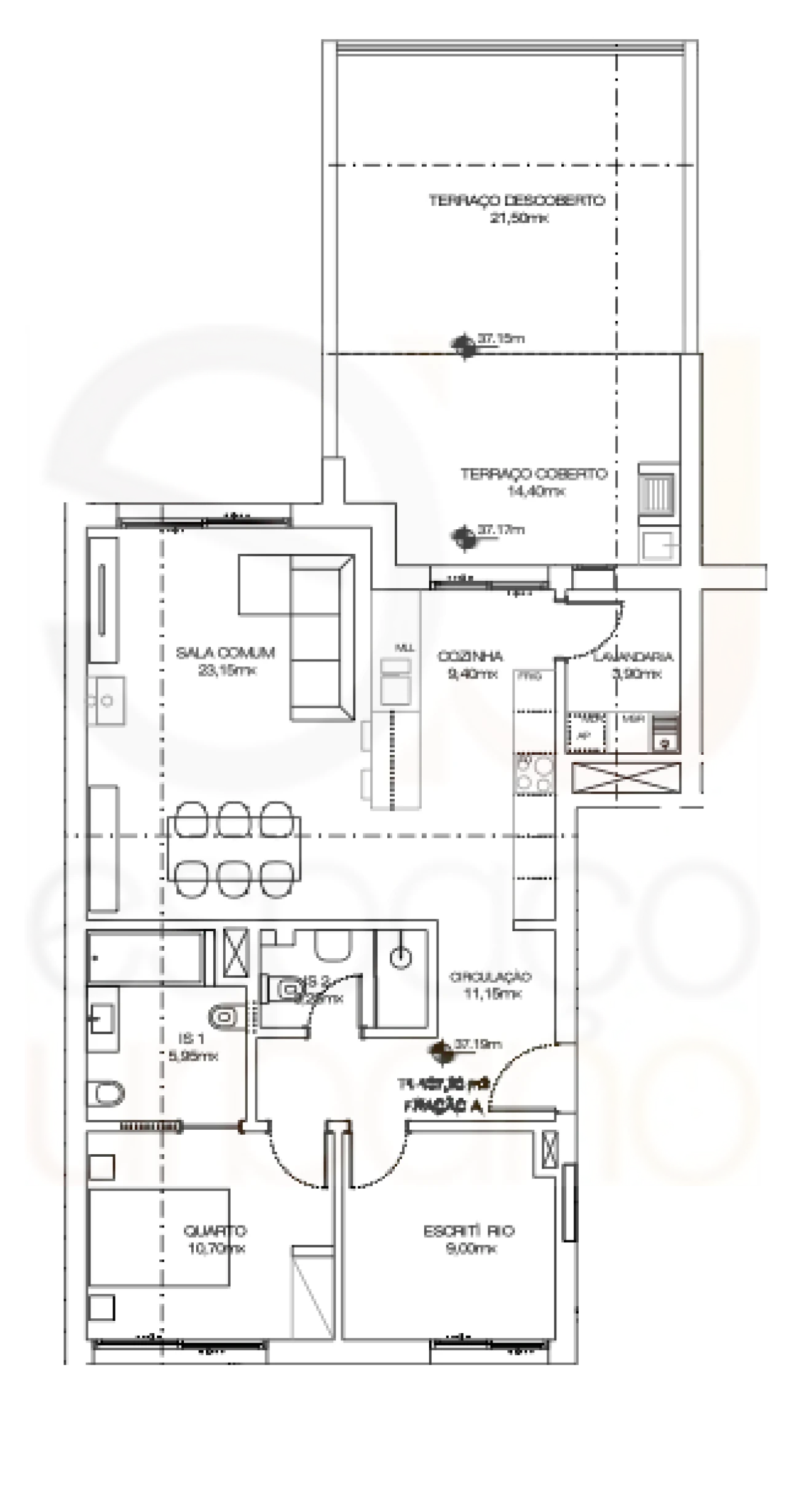 A generosa área exterior, juntamente com a luminosidade natural que o apartamento recebe, reforça o conforto e a vivência deste espaço.
