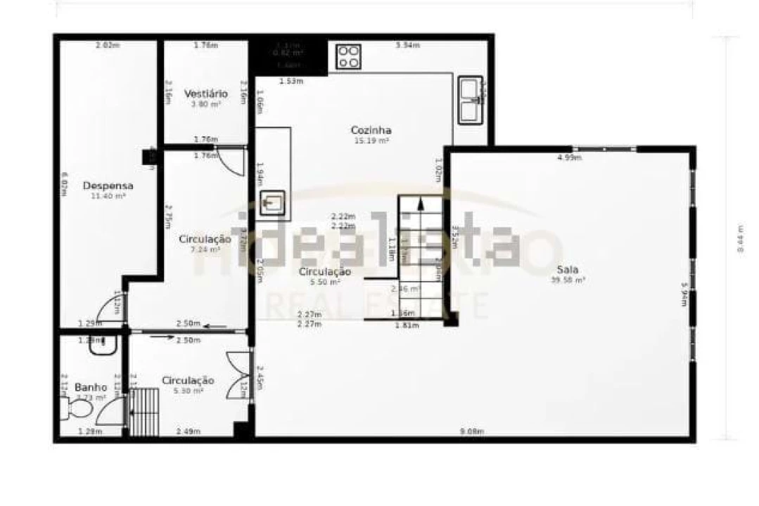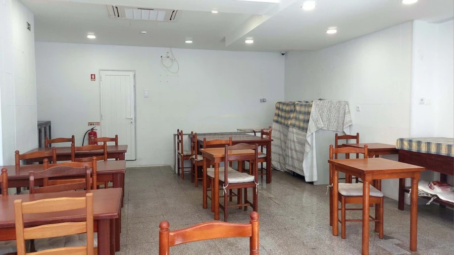 Cozinha profissional montada e funcional, sistema de extração (saída de fumos), ar condicionado, alarme e zonas de apoio/armazém. Está pronto a operar no primeiro dia.