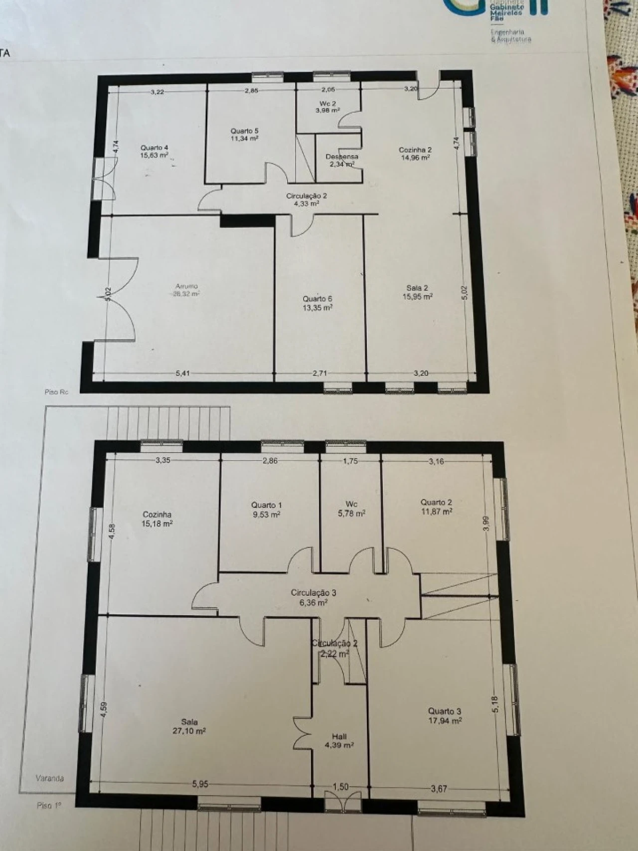 O rés do chão é composto por sala e cozinha, despensa, 1 WC e 3 quartos.