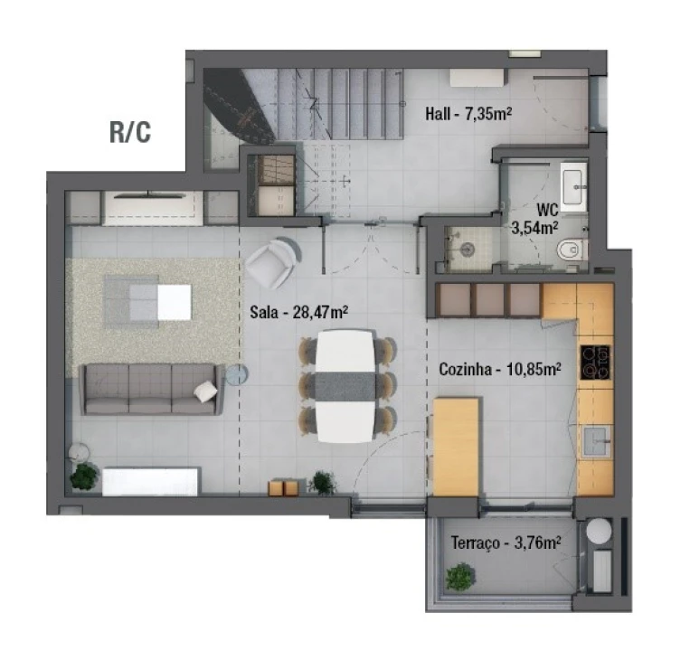 Os apartamentos, disponíveis nas tipologias T2 Duplex, oferecem áreas de estar amplas e luminosas, com cozinhas em open space totalmente equipadas com eletrodomésticos A+++.
