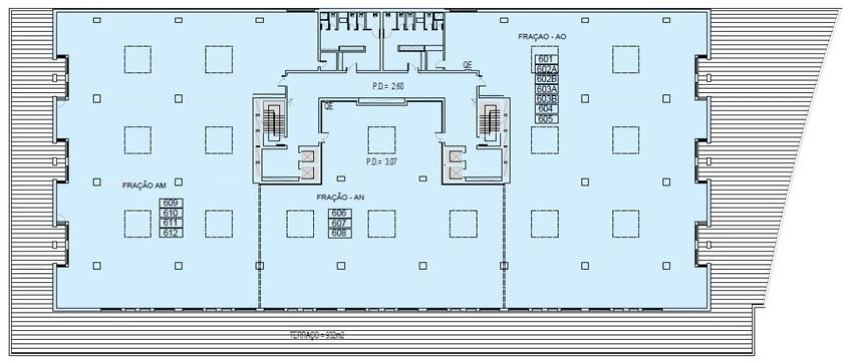 Inserido no 6º piso do edifício que conta com área total de 2533 m2, pode ser arrendado sozinho ou em conjunto com outra fração, assim como na sua totalidade.