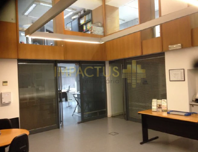 O rés-do-chão amplo, recebe-o com um hall de entrada de pé direito duplo e 221,5m² de área. Atualmente utilizado como escritório, apresenta uma recepção acolhedora, duas salas de reunião totalmente equipadas e uma sala openspace com armários, incluindo um espaço dedicado à central informática. Este piso também conta com duas casas de banho (masculina e feminina) para maior comodidade.
