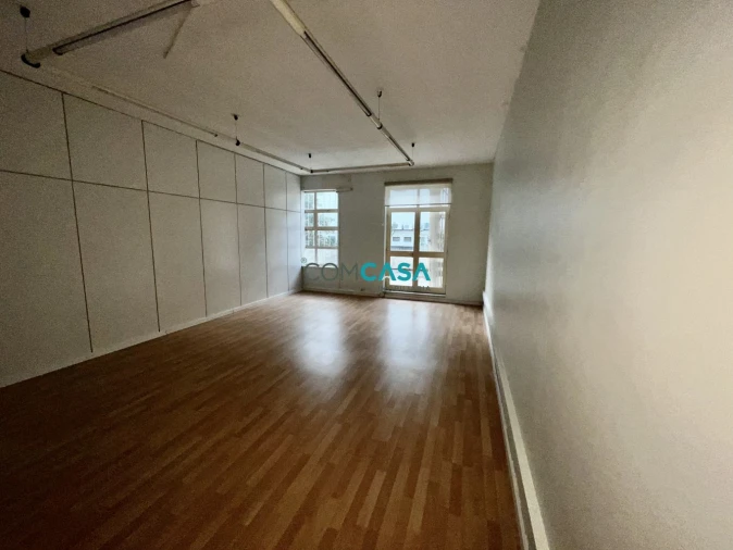 Loja destinada a comércio ou serviços, com duas frentes, área generosa, montra com cinco metros, bastante luminosidade e um terraço privativo com vinte metros quadrados.