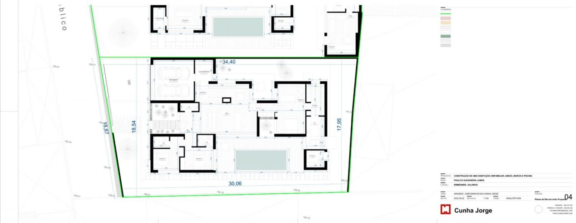 Excelente oportunidade de compra de terreno para construção de moradia terrea de 4 frentes já com o respectivo projecto, moradia V3 com piscina e garagem para dois carros.