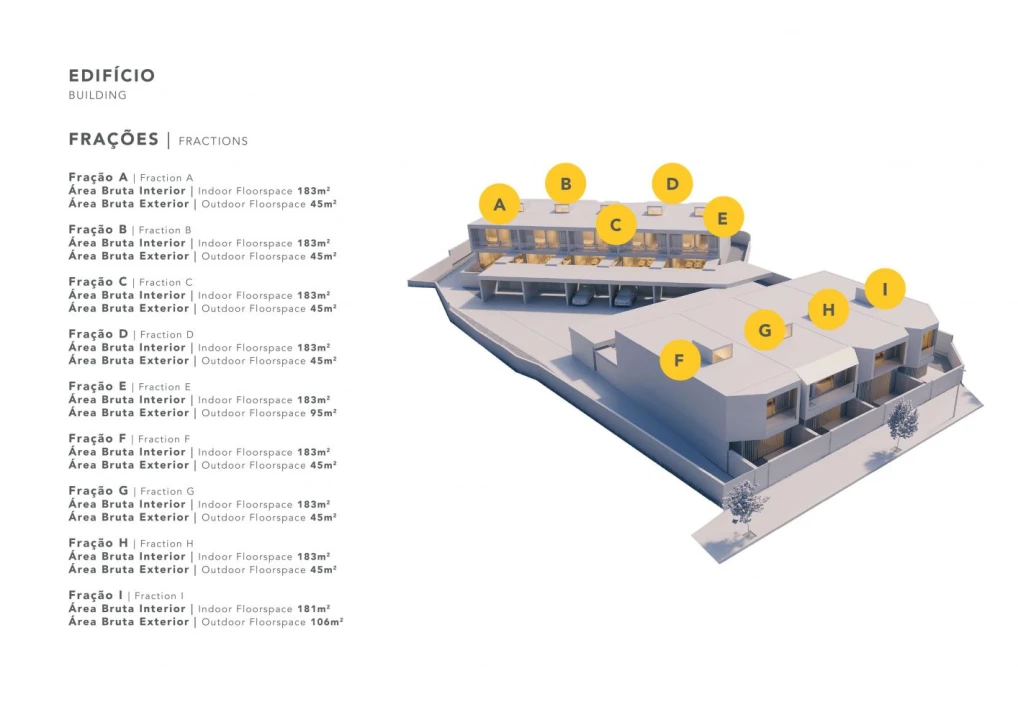 As moradias encontram-se equipadas com: pré instalação de alarme, Bomba de Calor, Pré instalação AVAC.