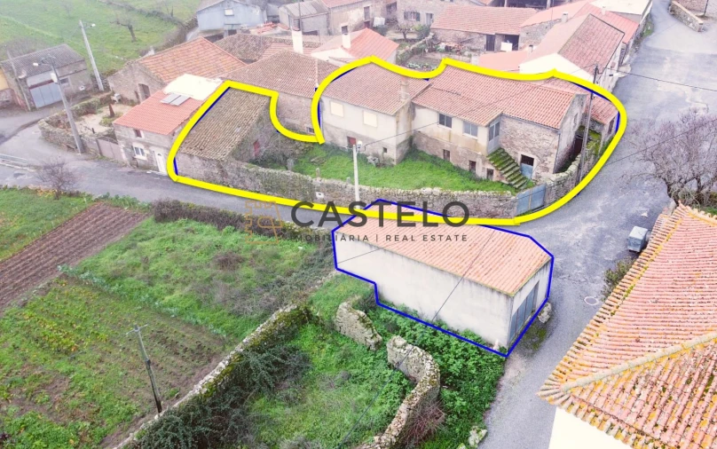 Moradia T3 de 237m2 de construção, com logradouro, lagar e anexos em São Pedro do Rio Seco - Almeida, com utilização independente possível como imóvel com um T1 e um T2.