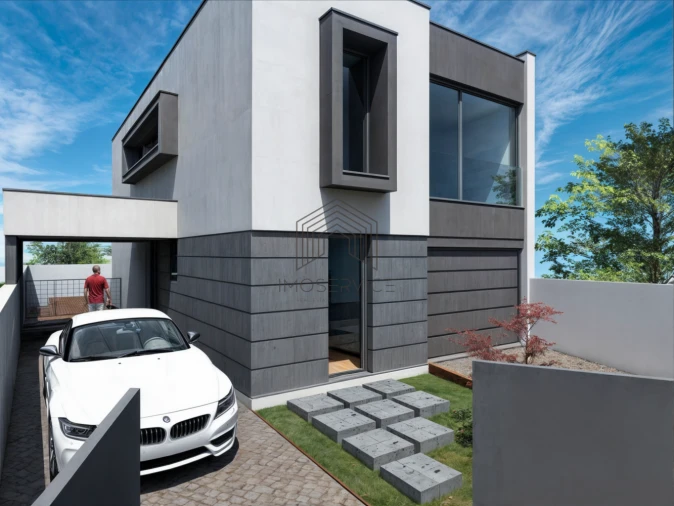 Moradia T3 de arquitetura contemporânea, em construção, em São Félix da Marinha, Vila Nova de Gaia.