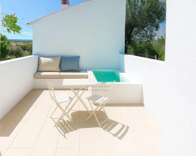 Composta por sala de estar com cozinha em open-space equipado por placa, forno, exaustor, frigorífico combinado em conceito aberto criam um ambiente acolhedor e funcional, com ligação direta ao exterior, onde encontrará um convidativo tanque-piscina, perfeito para os dias quentes da região.