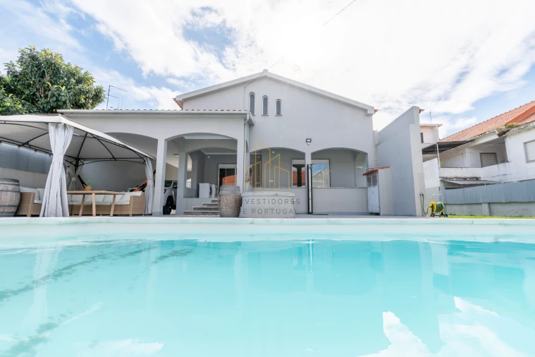 No exterior, encontra-se uma agradável zona de lazer pensada ao detalhe, com piscina de tratamento a sal, preparada para aquecimento, casa de banho de apoio e espaço ideal para convívio. A propriedade dispõe ainda de garagem com capacidade para até 3 viaturas.