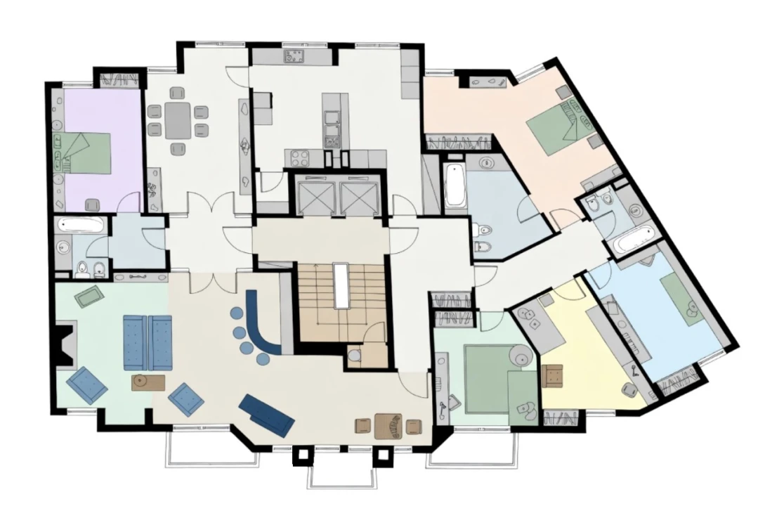 Deve ficar claro que esta fração foi concebida de raíz como um apartamento único, tal como os restantes apartamentos do prédio. Mas, olhando para a planta, não deixa de ser tentador pensar que se trata de um espaço virtualmente equivalente a 2 apartamentos.