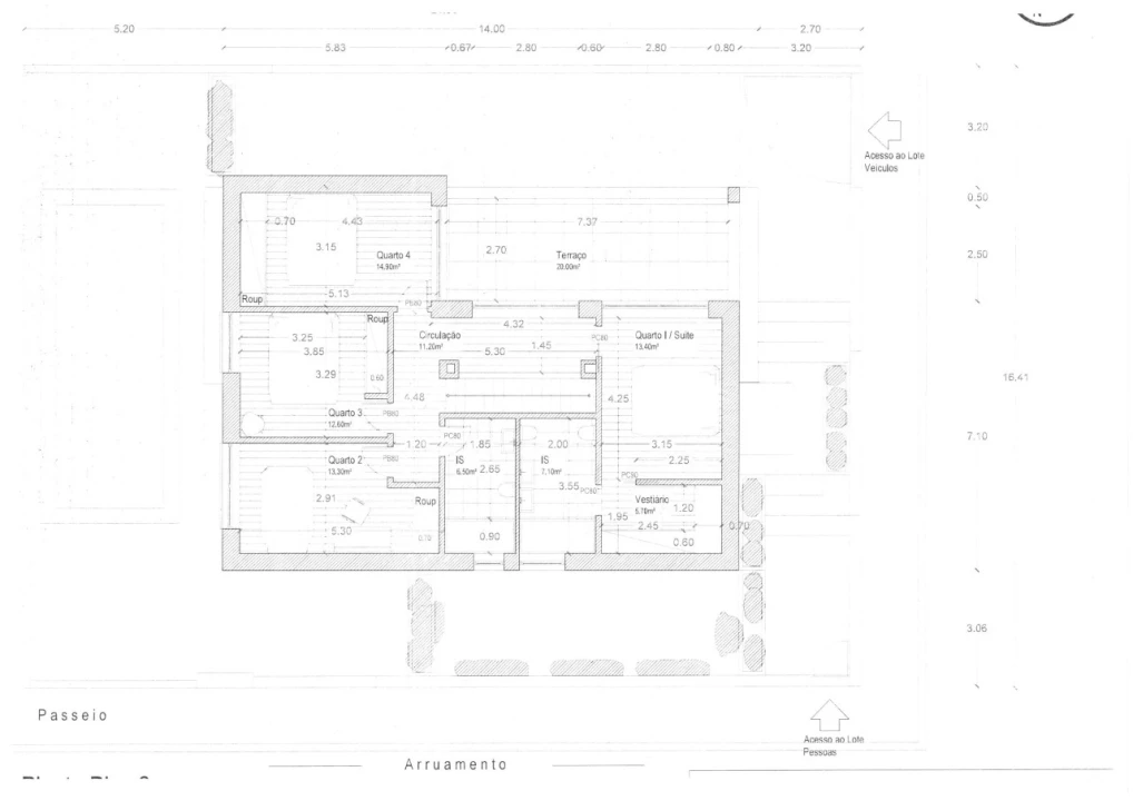 Composta por 2 pisos + cave, sendo composta por sala de estar de 34m2, cozinha equipada de 19m2, despensa, sala de refeições com 23m2, lavandaria, quarto, casa de banho. No piso superior dispomos de suíte com casa de banho privativa de 26m2 com varanda de 20m2, três quartos de áreas generosas sendo um deles com terraço de 20m2, casa de banho comum. Na cave contamos com zona de arrumos de 10m2 e garagem com 106m2.
