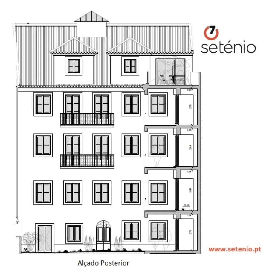 Projecto a submeter à C.M.L., de conversão para 18 fracções, com ampliação para 1.100m2 de área coberta.
