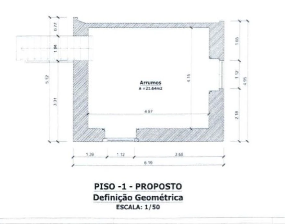 Piso inferior com Hall de entrada, sala de grande dimensão, sala de jantar, cozinha, uma suite e zona de arrumos.