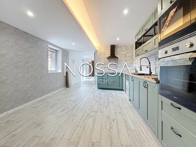 Composta por três grandes quartos, duas casas de banho, cozinha open space, lavandaria e espaço exterior, onde irá encontrar uma lareira rústica em pedra de chão, se pretender, tem espaço para colocar uma viatura.