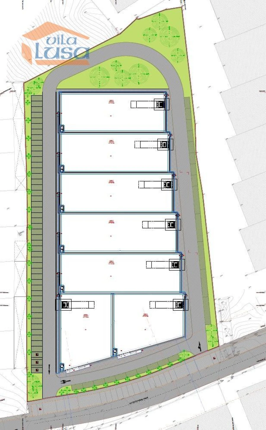 Área de construção para 8 armazéns industriais com áreas entre os 775 e os 985 m2