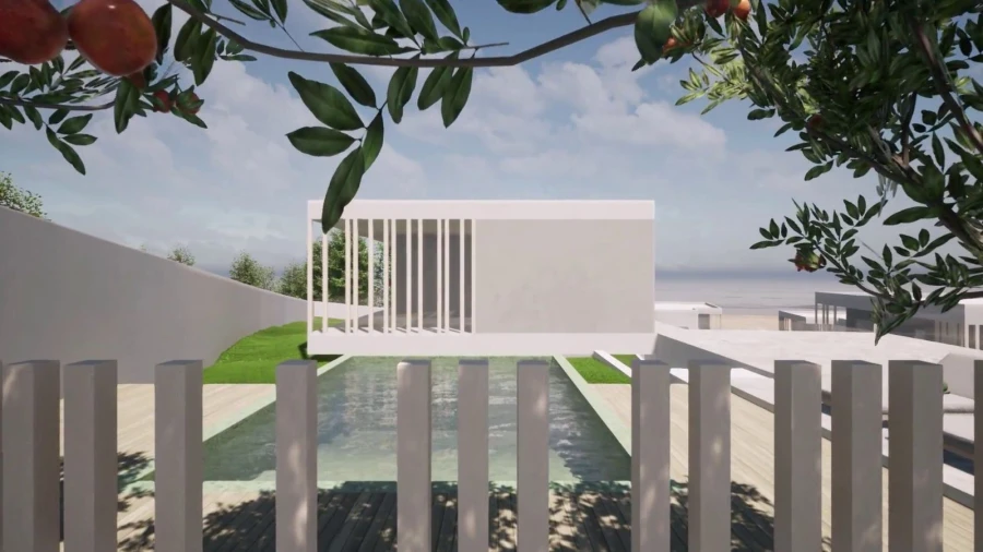 com vistas directas de mar, localizado em zona agradável, com áreas verdes e fácil acesso ao mar. Composta por dois pisos com garagem em Anexo com área de 50m2