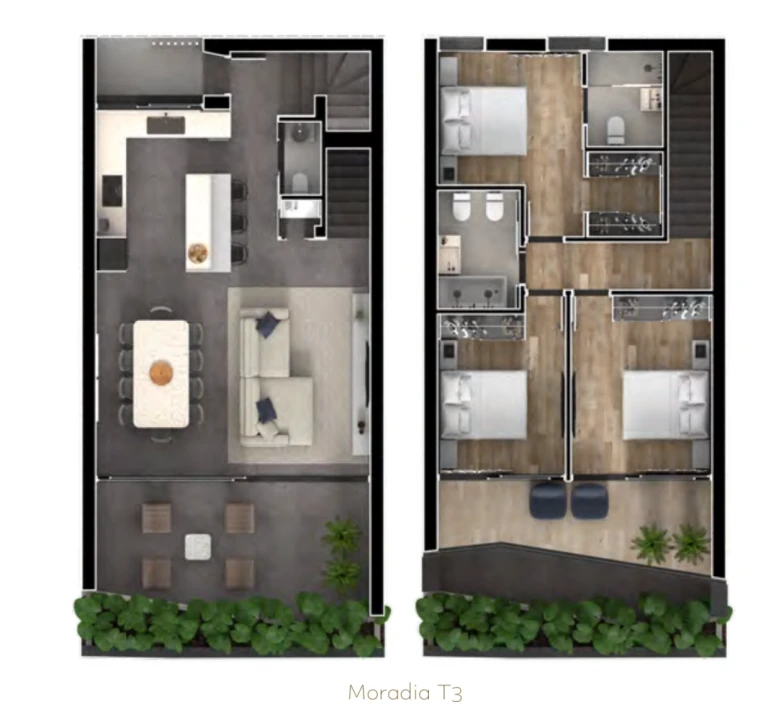 Rés-do-chão com sala e cozinha em open space, perfeita para momentos em família ou com amigos, com acesso direto a um terraço espaçoso onde pode desfrutar de refeições ao ar livre.