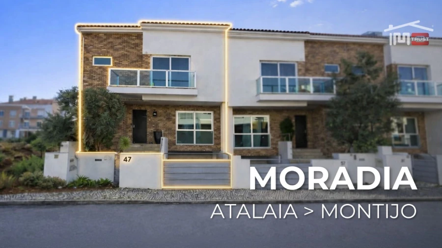 Apresento esta excelente moradia em banda T3, com possibilidade de conversão em T5, com 370m² de área bruta distribuídos por 4 pisos, localizada numa zona residencial tranquila e valorizada da Atalaia, no Montijo.