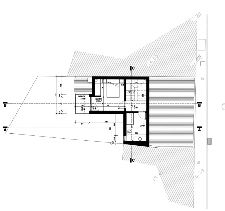 Quarto com 12 m2 com varanda de 3,06 m2,