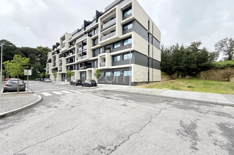 Apartamento T2 frente (nascente) com varanda, elevador e garagem para 2 carros.