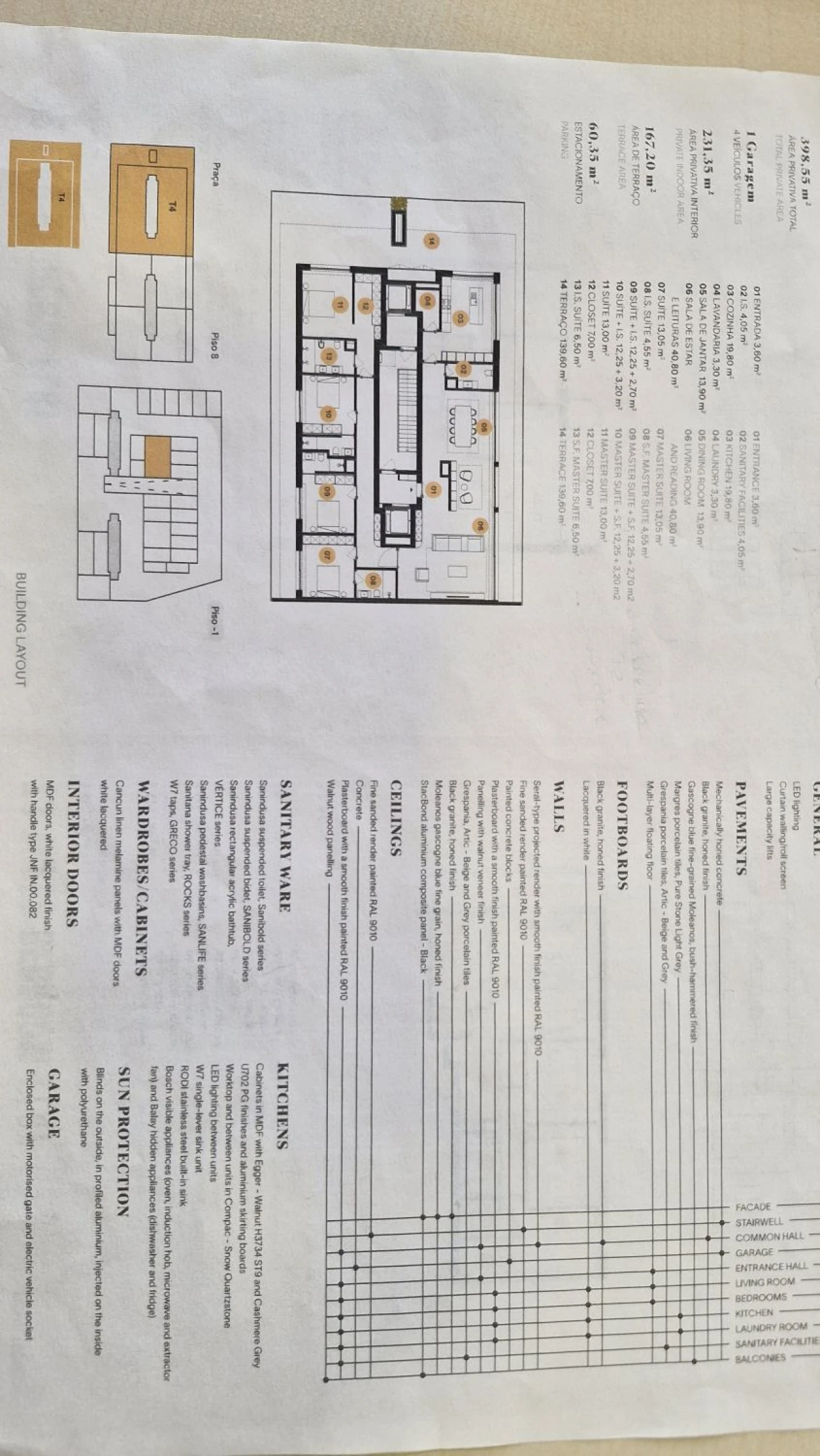 Todos os apartamentos vão ter iluminação LED, sancas para cortinas/estores de rolo screen, ar-condicionado multi-split e unidade mural interior em todas as divisões.