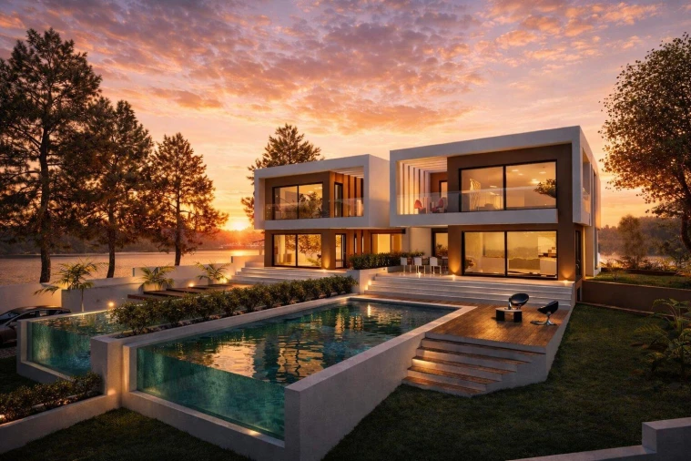 Inserida na exclusiva urbanização de Soltróia, na Península de Tróia, esta moradia T4 — com possibilidade de ser transformada em T5 — situa-se numa das localizações mais privilegiadas de Portugal, a poucos minutos de ferry de Setúbal e com acesso rápido a Lisboa. Com projeto aprovado, design contemporâneo e entrega chave na mão com decoração de luxo adaptada ao comprador, esta é uma oportunidade verdadeiramente única.. . Distribuição por Pisos:. . Piso 0 (136,25m2). . 1 Suite, ideal para pessoas com mobilidade mais reduzida.. . 1 Sala e Cozinha Open-Space: Espaço amplo com cozinha em ilha, totalmente equipada, com vista direta para a piscina e para o terraço.. . 1 Hall de entrada com roupeiros.. . Piso 1 (136,25m2). . 1 Master-Suite com 50 m2 e vista e varanda para o rio e closet com 11m2.. . 2 Suites também voltadas para o rio, uma delas com varanda.. Existe a possibilidade de se adicionar uma 3ª suite dividindo a Master Suite em 2 de 25m2 cada.. . Todas as Casas de banho com luz natural, assegurando uma atmosfera luminosa e agradável.. . . Cave (122,50 m2). . Estacionamento para 7 viaturas, ideal para grandes famílias ou colecionadores.. . Zona de lavandaria, WC e um quarto de serviço.. . Arrecadação e Home Cinema para momentos de lazer e entretenimento.. . Exterior. . Piscina de água salgada com cascata e iluminação LED, perfeita para momentos de relaxamento e convívio.. . Características de Excelência:. . Arquitetura contemporânea com acabamentos modernos.. . Aspiração central, painéis solares e estores elétricos.. . Ar condicionado Mitsubishi em todas as divisões e piso radiante para maior conforto térmico.. . Bomba de calor e caixilharia oscilo-batente com corte térmico e acústico, incluindo nas casas de banho.. . Sistema de segurança avançado: 2 alarmes independentes (moradia e garagem) e 6 câmaras de vigilância com acesso remoto via telemóvel.. . Jardim com calçada à portuguesa e exposição solar ideal: Nascente, Poente e Sul.. . Localização Premium:. Situada numa urbanização tranquila e exclusiva, esta moradia fica a poucos metros da praia, inserida na deslumbrante Península de Troia. A região combina natureza, luxo e proximidade a serviços e atividades para toda a família.. . Opções Personalizáveis:. Possibilidade de realizar alterações ao projeto.. Possibilidade de venda decorada e mobilada (valor mediante projecto de interiores). . As fotografias de interiores correspondem a obras anteriores do mesmo construtor, refletindo a qualidade e o nível de acabamento que caracterizam os seus projetos.
