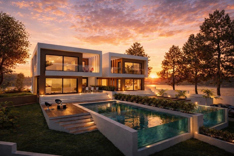 Inserida na exclusiva urbanização de Soltróia, na Península de Tróia, esta moradia T4 — com possibilidade de ser transformada em T5 — situa-se numa das localizações mais privilegiadas de Portugal, a poucos minutos de ferry de Setúbal e com acesso rápido a Lisboa. Com projeto aprovado, design contemporâneo e entrega chave na mão com decoração de luxo adaptada ao comprador, esta é uma oportunidade verdadeiramente única.. . Distribuição por Pisos:. . Piso 0 (136,25m2). . 1 Suite, ideal para pessoas com mobilidade mais reduzida.. . 1 Sala e Cozinha Open-Space: Espaço amplo com cozinha em ilha, totalmente equipada, com vista direta para a piscina e para o terraço.. . 1 Hall de entrada com roupeiros.. . Piso 1 (136,25m2). . 1 Master-Suite com 50 m2 e vista e varanda para o rio e closet com 11m2.. . 2 Suites também voltadas para o rio, uma delas com varanda.. Existe a possibilidade de se adicionar uma 3ª suite dividindo a Master Suite em 2 de 25m2 cada.. . Todas as Casas de banho com luz natural, assegurando uma atmosfera luminosa e agradável.. . . Cave (122,50 m2). . Estacionamento para 7 viaturas, ideal para grandes famílias ou colecionadores.. . Zona de lavandaria, WC e um quarto de serviço.. . Arrecadação e Home Cinema para momentos de lazer e entretenimento.. . Exterior. . Piscina de água salgada com cascata e iluminação LED, perfeita para momentos de relaxamento e convívio.. . Características de Excelência:. . Arquitetura contemporânea com acabamentos modernos.. . Aspiração central, painéis solares e estores elétricos.. . Ar condicionado Mitsubishi em todas as divisões e piso radiante para maior conforto térmico.. . Bomba de calor e caixilharia oscilo-batente com corte térmico e acústico, incluindo nas casas de banho.. . Sistema de segurança avançado: 2 alarmes independentes (moradia e garagem) e 6 câmaras de vigilância com acesso remoto via telemóvel.. . Jardim com calçada à portuguesa e exposição solar ideal: Nascente, Poente e Sul.. . Localização Premium:. Situada numa urbanização tranquila e exclusiva, esta moradia fica a poucos metros da praia, inserida na deslumbrante Península de Troia. A região combina natureza, luxo e proximidade a serviços e atividades para toda a família.. . Opções Personalizáveis:. Possibilidade de realizar alterações ao projeto.. Possibilidade de venda decorada e mobilada (valor mediante projecto de interiores). . As fotografias de interiores correspondem a obras anteriores do mesmo construtor, refletindo a qualidade e o nível de acabamento que caracterizam os seus projetos.